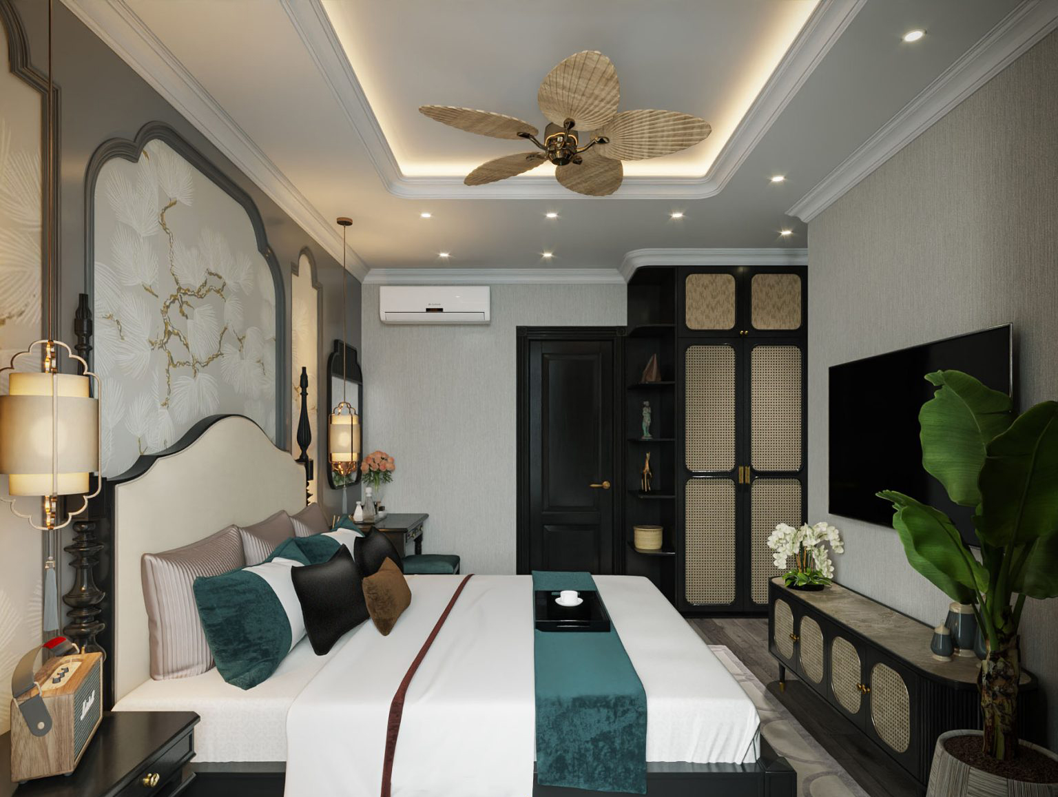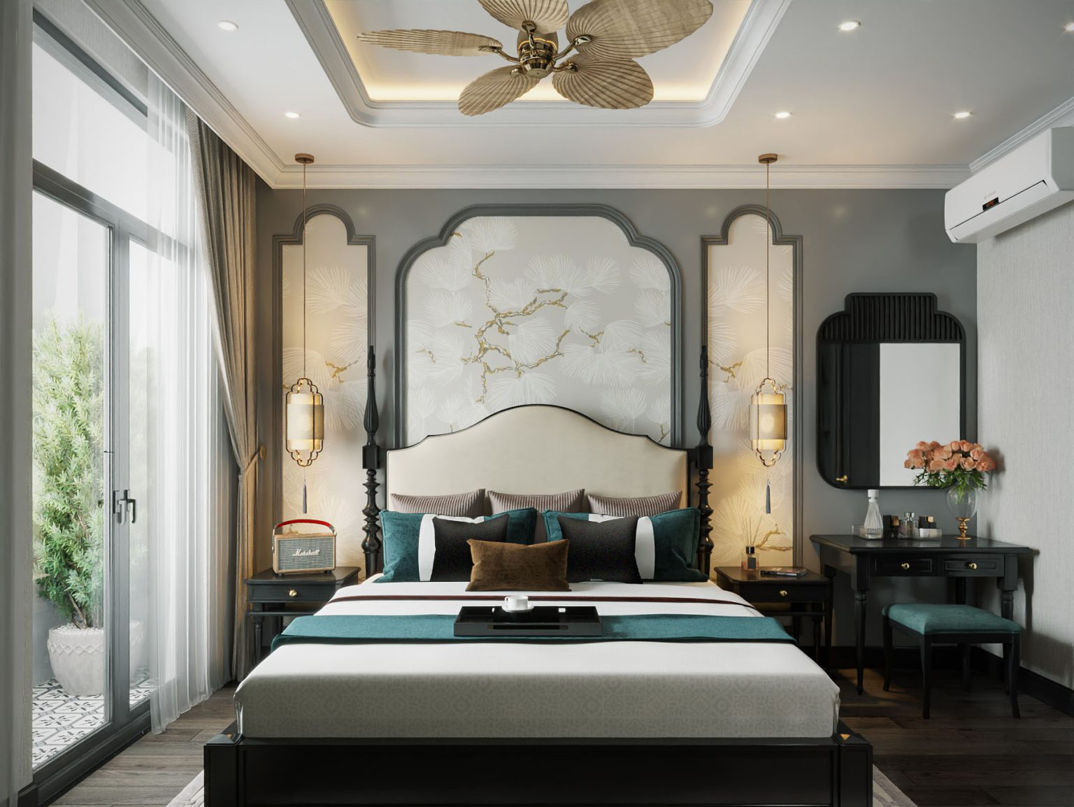 Phòng ngủ master rộng rãi với thiết kế cổ điển đậm chất Indochine